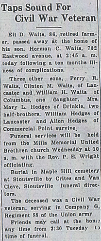 My 3rd great grandfather, Eli D. Waits, scratched his name (“E. Waits”) into the back of the pendulum from this “kitchen” style clock, sold by the Attleboro Clock Company. He most likely purchased the clock in the Lancaster, Ohio area.
